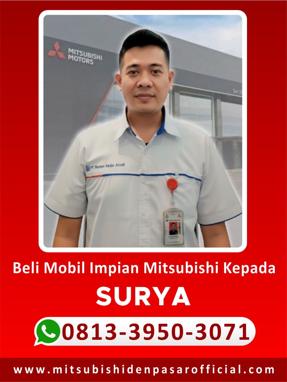 Dealer Mitsubishi Denpasar - Melayani penjualan mobil secara Cash dan Credit untuk All-Type Mobil Mitsubishi. Pengajuan secara kredit dapat melalui Mitra Finance kami tentunya dengan Down Payment Rendah dan Angsuran Terjangkau. Harga yang tertera belum masuk promo diskon atau cashback yang tersedia, dan harga tersebut dapat berubah kapan saja.